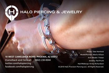 Below is a postcard design for my friends at HaloPiercing in Phoenix, AZ - visit their website @ www.halopiercing.com